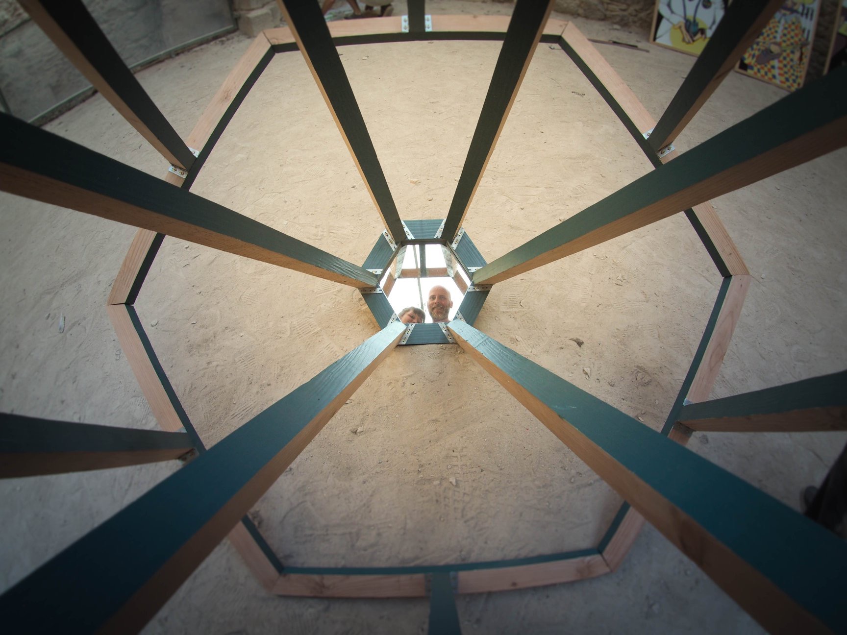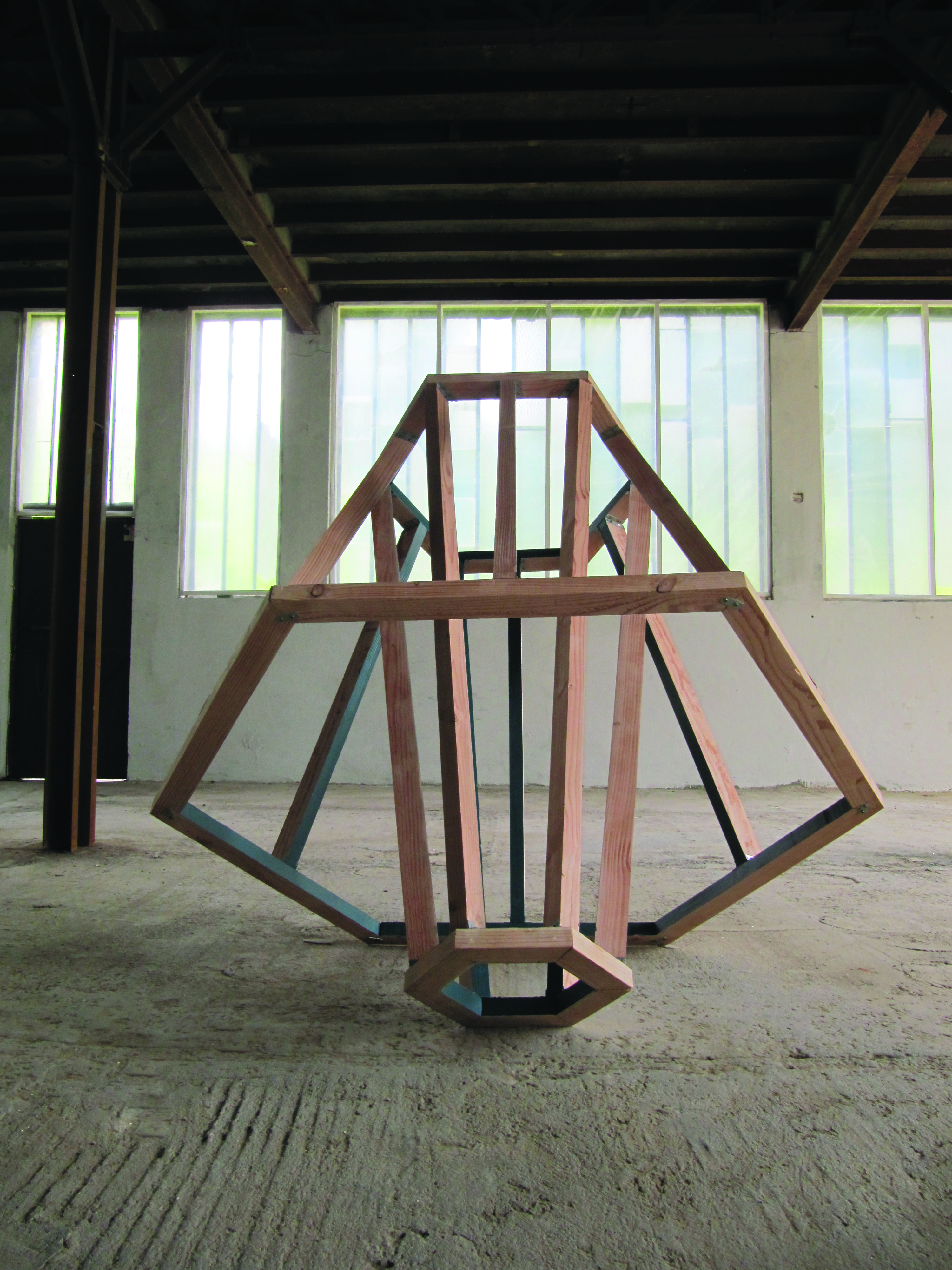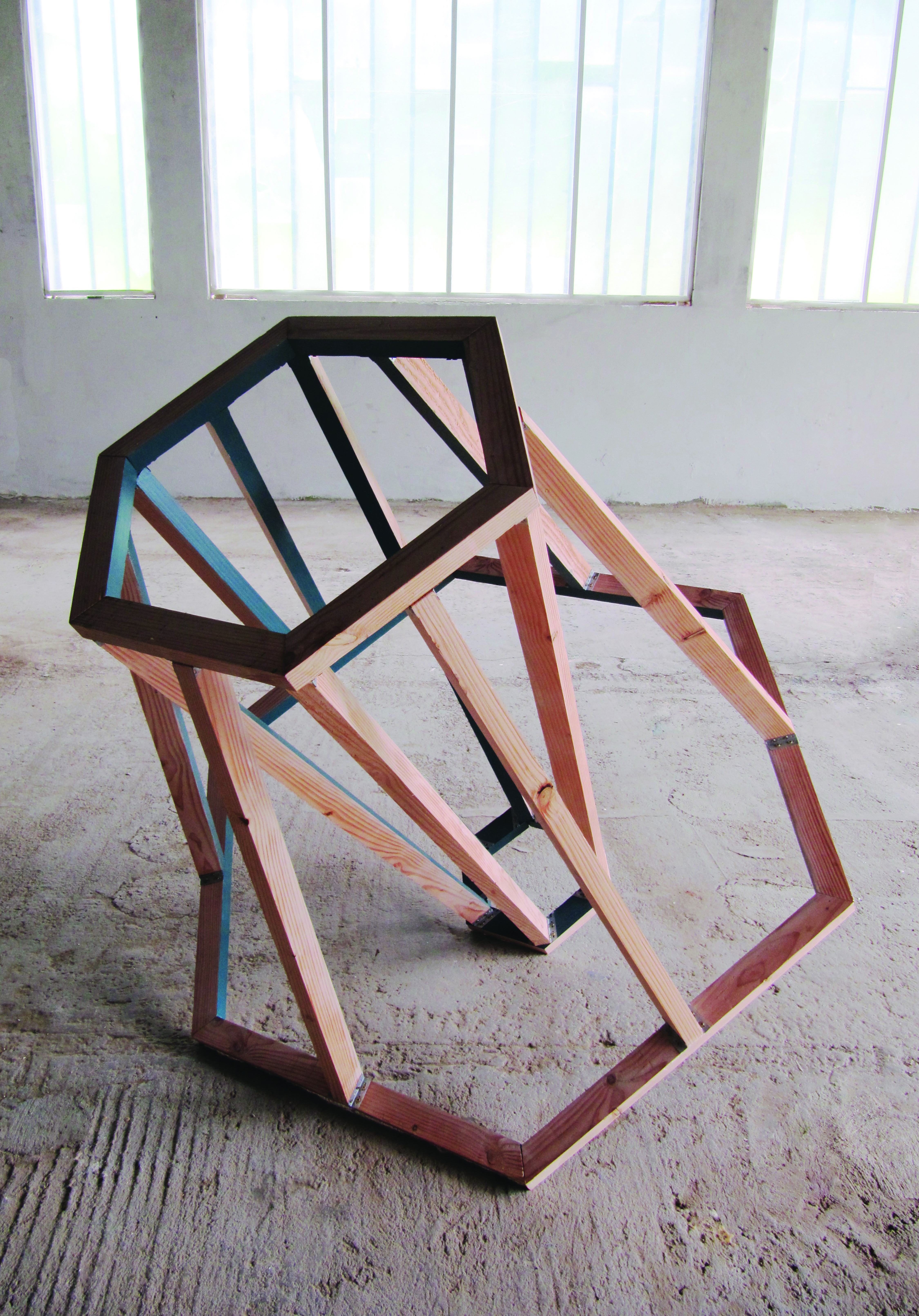 Bois, métal, peinture, 140 x 130 x 130 cm.