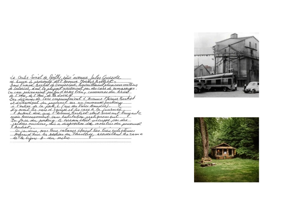 Pour le projet Mémoires vives, j’ai proposé à un groupe de personnes vivant depuis de nombreuses années à Parilly (quartier de Vénissieux ayant eu des changements urbanistiques et architecturaux majeurs) de faire une description ciblée d’un endroit ayant disparu. La demande et les descriptions sont larges. Elles peuvent toucher un bâtiment détruit, des déviations de voies, un espace dit « vide » emplit par des constructions ou encore le réaménagement d’une place.