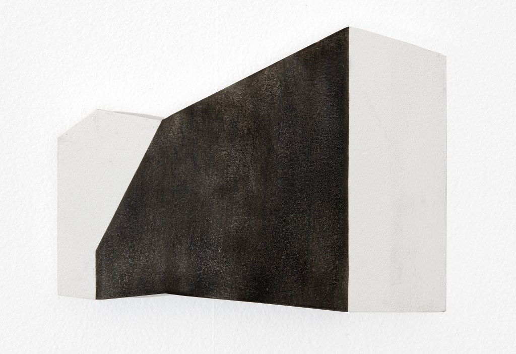 Installation murale, bois, peinture, suie, verre, béton. 250 x 250 cm.