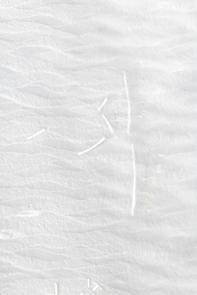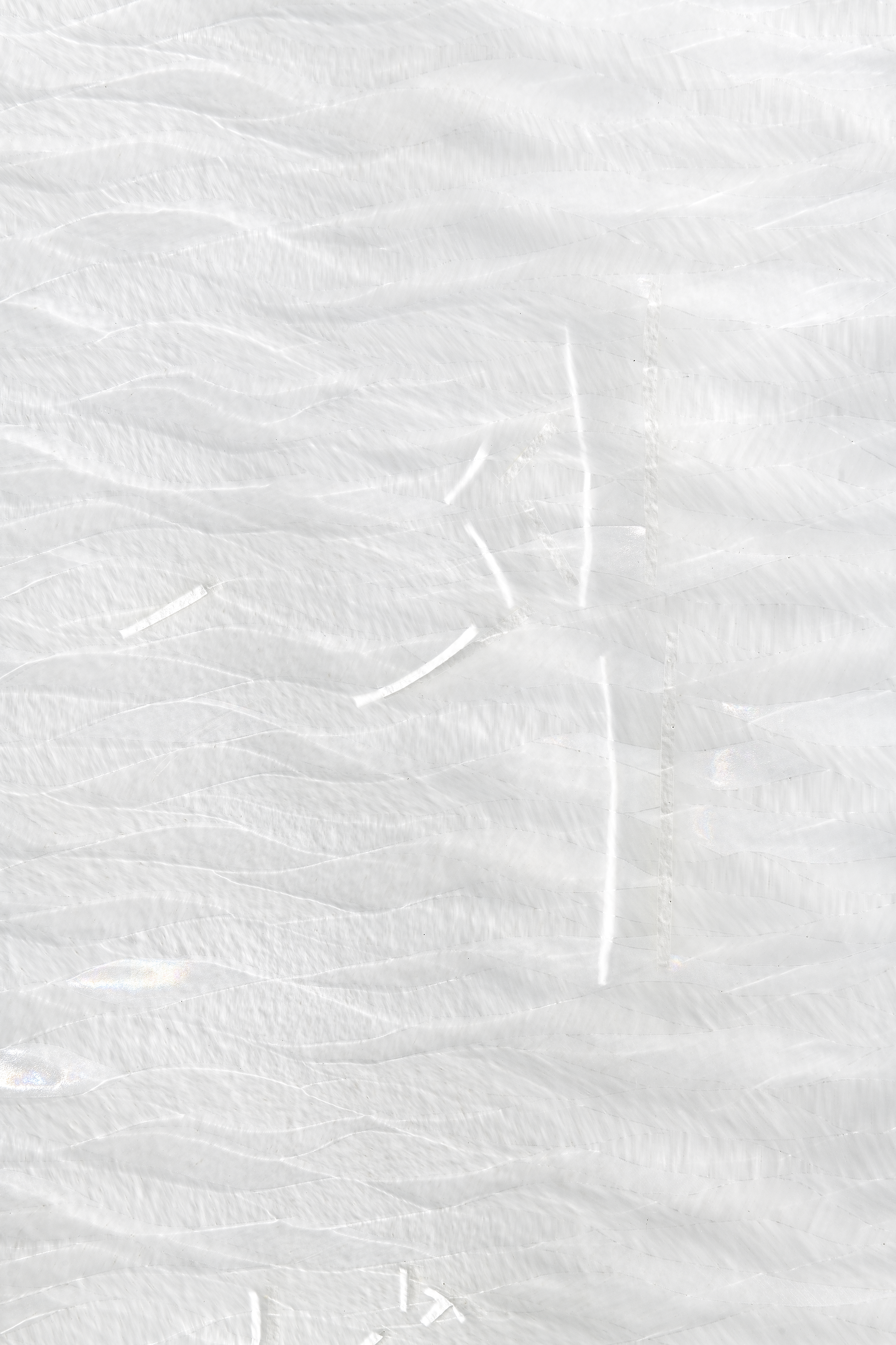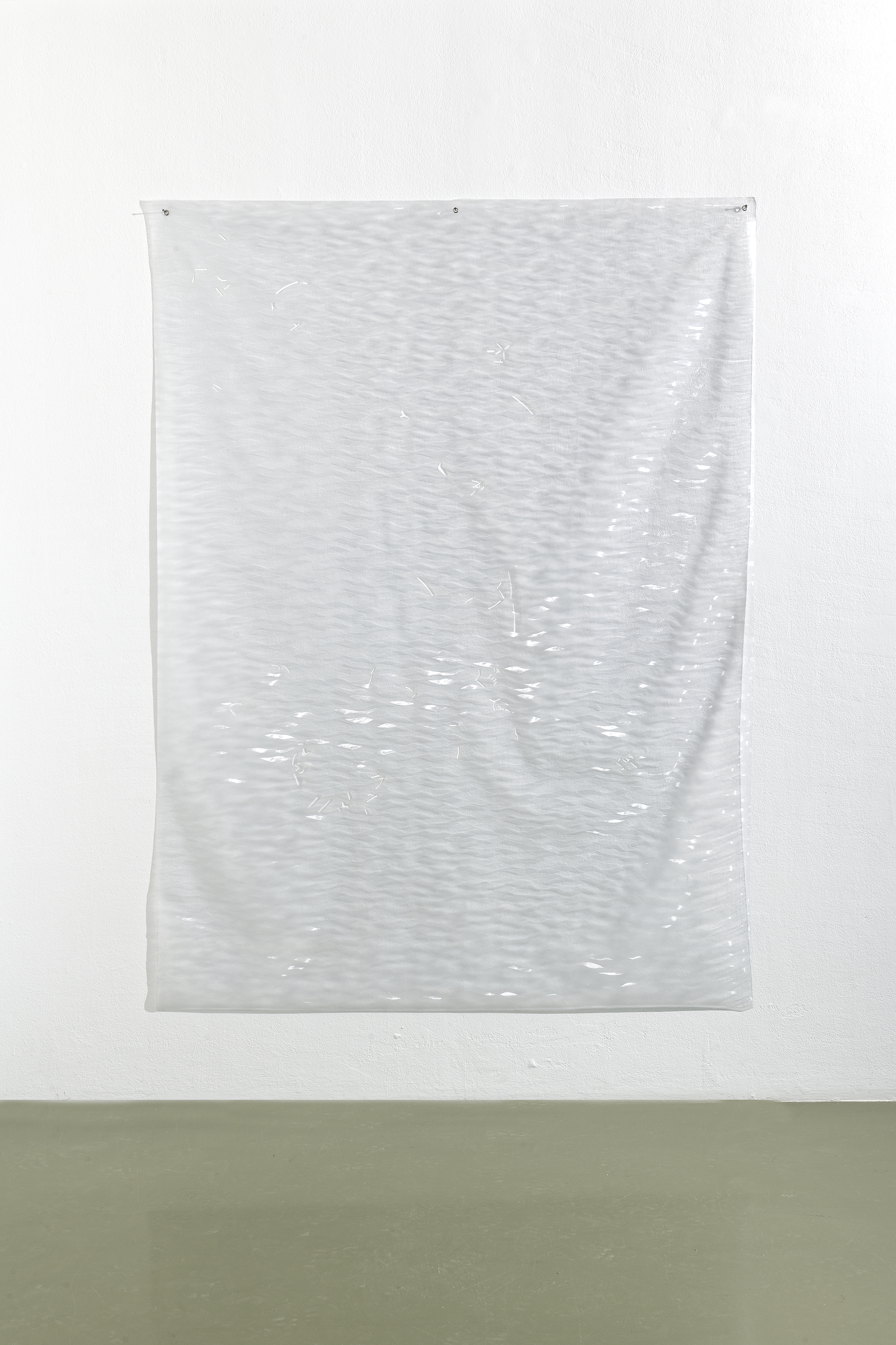 Ces lignes sont alors découpées dans une toile cirée transparente, représentant une partition aléatoire, abstraite et décontextualisée des déplacements effectués par les habitants. Les découpes, discrètes, viennent ponctuer la toile.