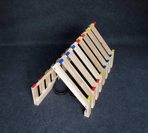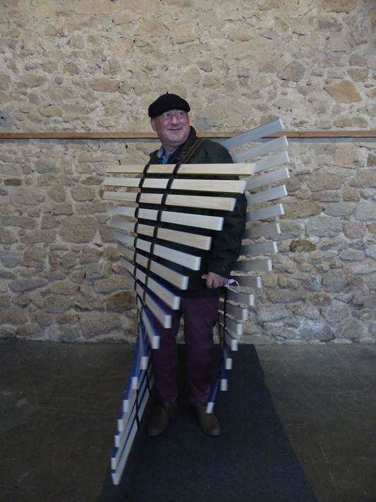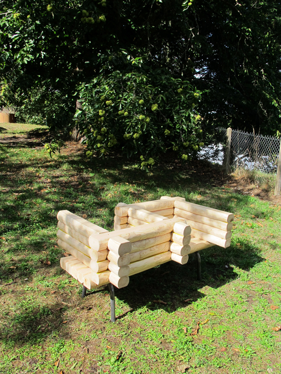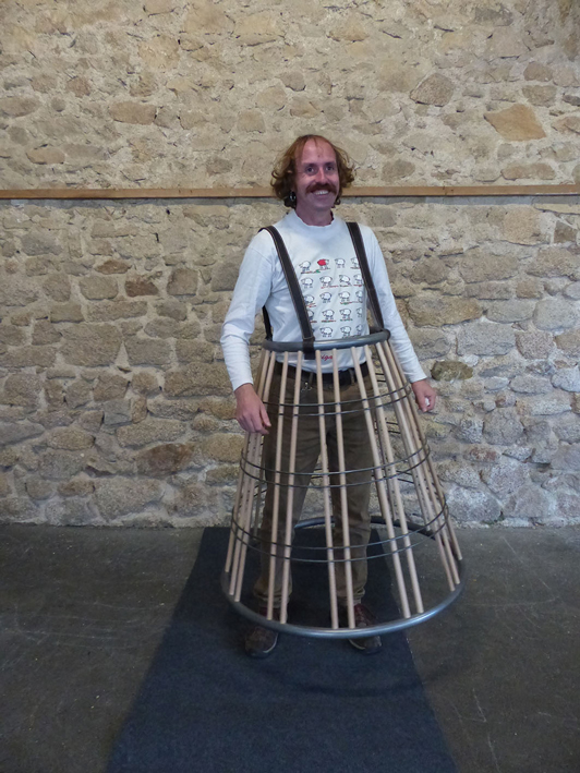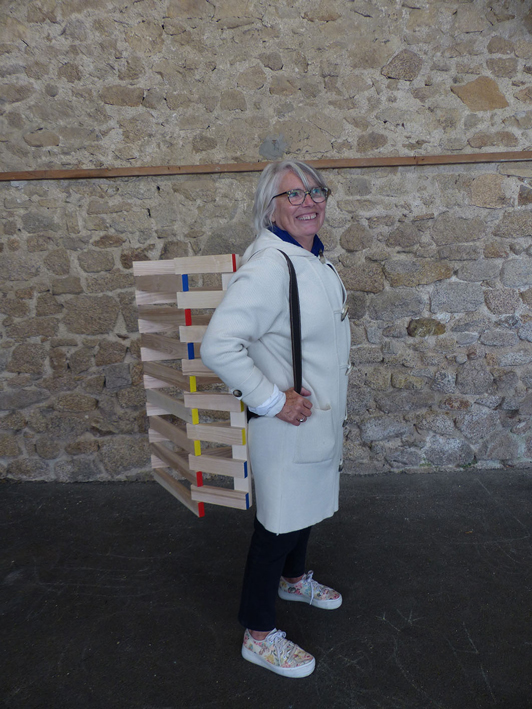 fuste de châtaignier, peinture acrylique, métal, 150 x 88 x 75 cm
