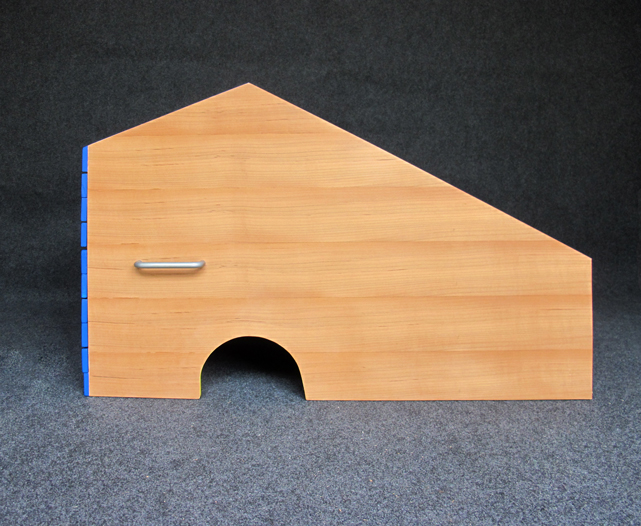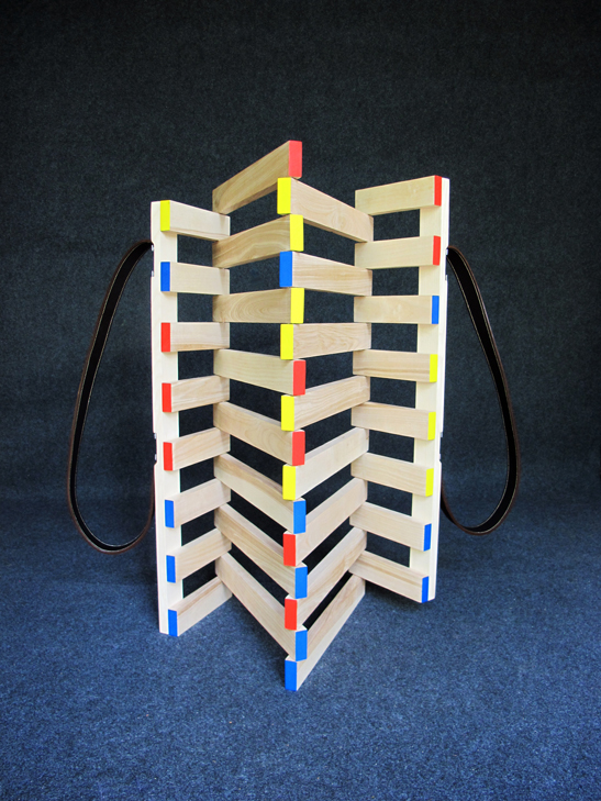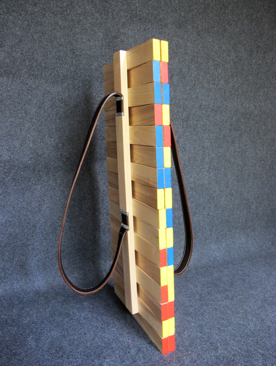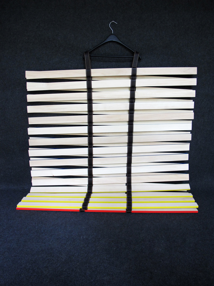 frêne, peinture acrylique, cuir, 82 x 40 x 16 cm (fermé)