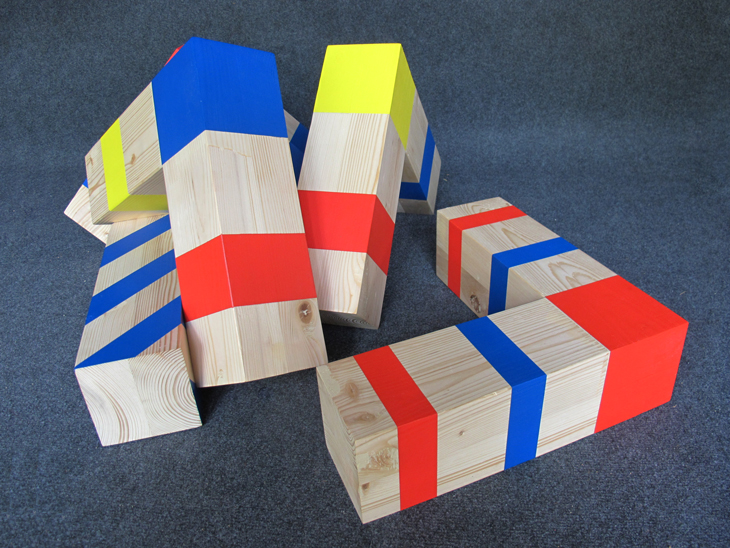 sapin, peinture acrylique, 40 x 40 x 11,5 cm (chacun)
