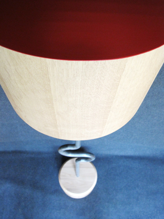 placage chêne, peinture acrylique, métal, 208 x 41 x 41 cm