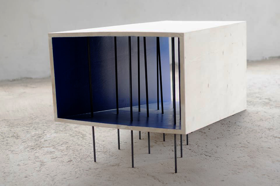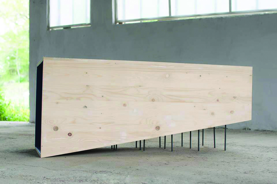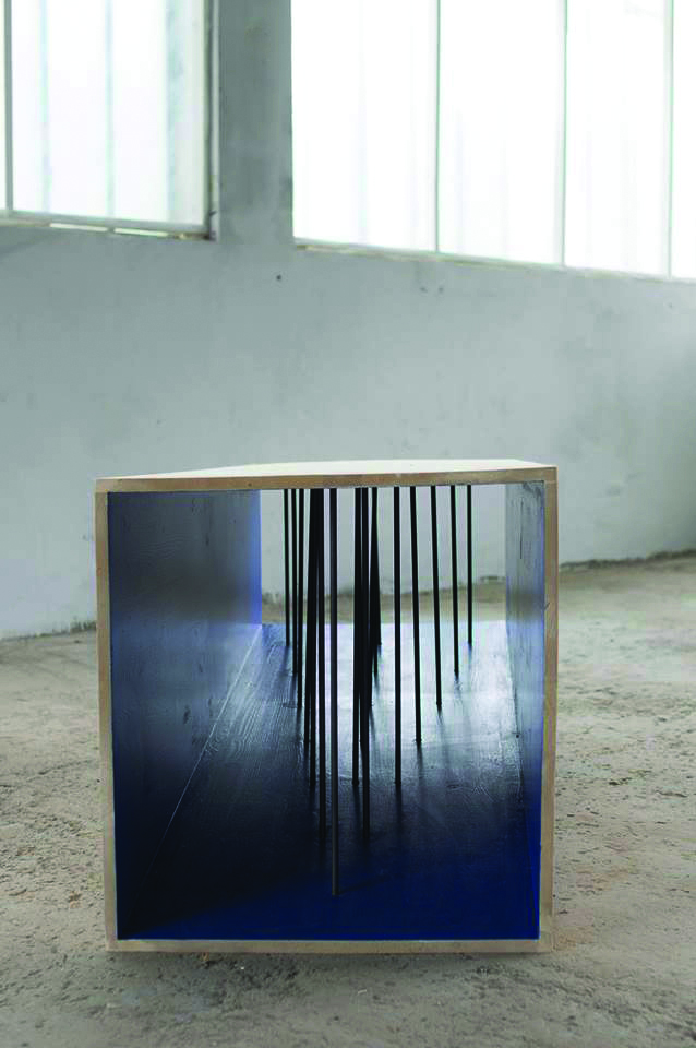 Bois, métal, peinture, 150 x 60 x 64 cm.