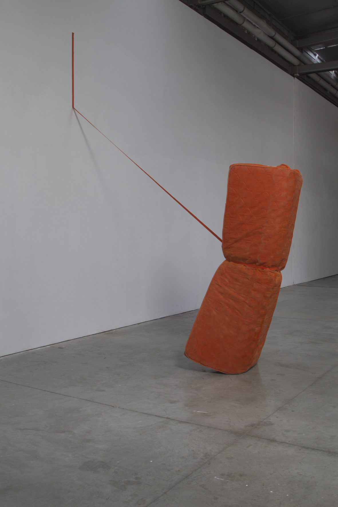 Monochrome dos au mur Monochrome dos au mur, 2014matelas, peinture acrylique, sangle, agrafes, 270 x 160 x 200 cm